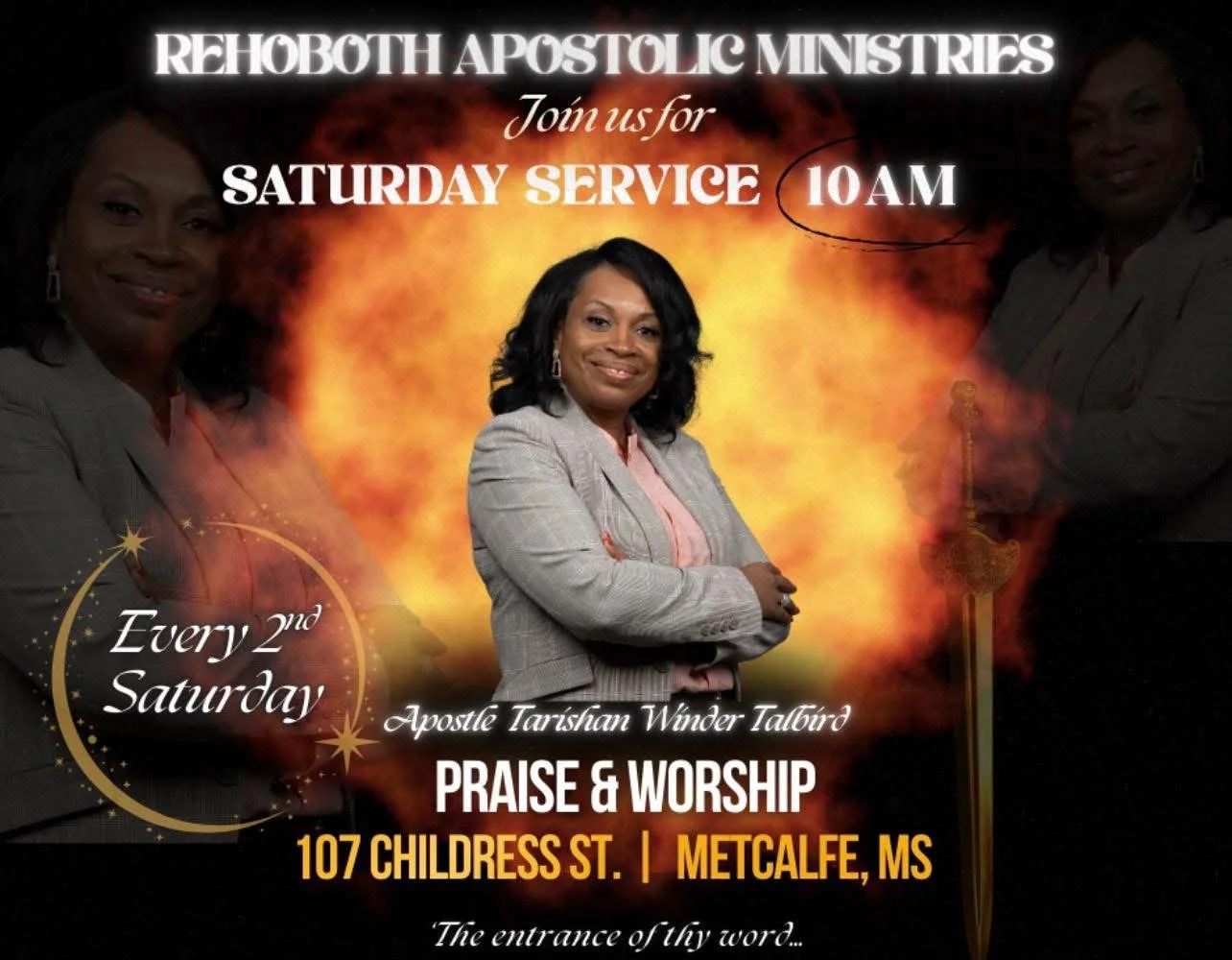 Join Rehoboth Apostolic Ministry every 2nd Saturday at 107 Childress Street, Metcalfe Ms @10am Join Rehoboth Apostolic Ministry every 2nd Saturday at 107 Childress Street, Metcalfe Ms @10am Join Rehoboth Apostolic Ministry every 2nd Saturday at 107 Childress Street, Metcalfe Ms @10am